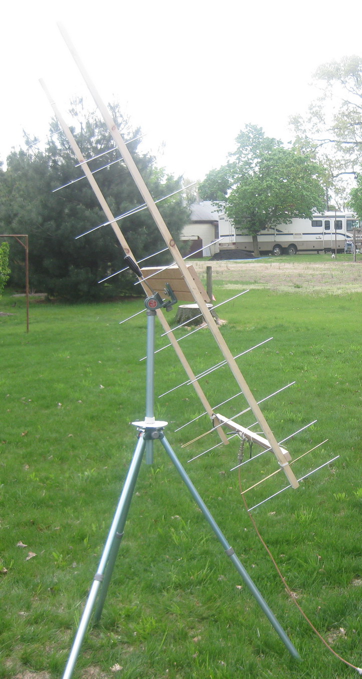 antennas are 2 x 11 element (WA5VJB design) made on wood booms. They are