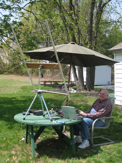 with the low power at Arecibo I did not hear anything.The location is my back yard. On the subsequent days I moved the antennas down to the ground and extended the legs on the tripod. On day 2 I got a good preamp and added a 100 watt amplifier. I was able to copy KP4AO's SSB about 80% and got 100% copy on CW. I called long and hard but they did not hear me. |